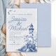 Invitation Blue White Lighthouse Coastal Beach Wedding