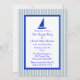 Cette invitation présente une jolie peinture d'un voilier. Des rayures bleues et blanches donnent à l'invitation une allure moderne et tendance. Il est facile de remplir vos informations et, voilà, vous avez une invitation de fête moderne et design qui est à vous de plaire.Il y a des produits correspondants — y compris des timbres-poste et des cartes de voeux — dans cette boutique, Marian Cates Designs à www.zazzle.com/mariancatesdesigns*/ Regardez sous Invitations.