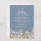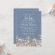 Muted Pastel Boho Botanical Garden Baby Shower Invitation. Celebrate the mom-to-be with this elegant boho design featuring a dark dusty blue or soft periwinkle background on both the front and back for a calm, refined, and timeless look that works beautifully from spring through autumn. At the top, “Baby Shower” is displayed in a refined mix of script and serif typography in crisp white for an elegant yet modern feel.