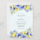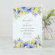 A vibrant watercolor design bursts with striking blue blossoms and cheerful yellow buds, accented by delicate green foliage. This cheerful composition evokes a light and airy spring atmosphere, perfect for a joyous occasion.