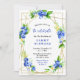 This fun and whimsical birthday party invitation features watercolor blueberries, daisies and foliage on a gold geometric frame. The text combines handwritten script and serif fonts for a stylish and modern look. This is perfect for a summer rustic birthday party.
