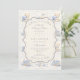 A sweet vintage-inspired design featuring delicate blue bows, soft striped detailing, and charming blueberry garden illustrations. Toile-style artwork with adorable animals and fruit baskets creates a classic storybook feel in a soft powder blue palette. The ornate central frame adds elegance while keeping the overall look light, refined, and timeless. Perfect for a baby shower with a gentle garden theme and a touch of traditional charm.