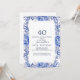 Célébrez dans le style avec cette élégante invitation à 40e anniversaire fleurie. Doté d'une étonnante couronne d'aquarelle bleu marine et de fleurs roses rousses sur un arrière - plan bleu turquoise sophistiqué, ce design est parfait pour une fête d'anniversaire classe et intemporelle. Personnalisez avec vos détails d'événement pour créer une invitation magnifique et mémorable!