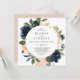 Cette faire-part de mariage de carré décontracté blanc, aux fleurs rousses et marines est parfaite pour un mariage fleuri. Le design classique et élégant présente une aquarelle moderne bleu marine et des fleurs roses rousses.