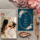 Invitation Blush Floral Navy Simple We Do Photo Mariage