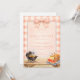 A sweet and feminine Baby-Q design featuring soft blush gingham and a statement bow at the top. The watercolor grill scene, fresh lemonade, watermelon slices, and picnic basket details create a charming backyard gathering feel, while the wooden table base adds warmth and texture. The structured inner panel keeps the layout clean and elegant for event details. Perfect for a summer baby shower with a soft pink picnic aesthetic.