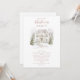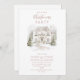 An elegant holiday invitation featuring a hand-painted blush manor adorned with evergreen garlands and winter trees. The soft pastel tones and refined architecture evoke timeless charm and warmth — perfect for hosting a sophisticated Christmas party or festive family gathering in style.