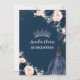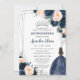 Invitation Blush Navy Blue Floral Princess Silver Quinceañera