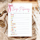 RÉPONSES : 1. AMOUR AMOUR DOUCE AMOUR 2. BRIDE-TO-BE 3. FÊTE DES MARIÉES 4. PORTE-ANNEAU 5. LUNE DE MIEL 6. TOSS THE BOUQUET 7. KISS THE BRIDE 8. JUSQU'À CE QUE LA MORT NOUS FASSE PARTIE 9. BRIDEZILLA 10. AIME LA LUNE ET RETOUR 11. MARIAGE DE DESTINATION 12. ME MARIEZ-VOUS ? — Ajoutez une touche de modernité à votre douche nuptiale avec notre Bow rose vif "She's Tying the Knot" Fête des mariées Emoji Pictionary Game. Les clients apprécieront de déchiffrer les expressions mariages populaires en utilisant des émoticônes, de rires étincelants et de concurrence amicale. Avec son design d'arc rose vif charmant, ce jeu ajoute une touche d'élégance à votre célébration tout en créant des moments mémorables pour la future mariée et ses invités. Laissez les jeux de devinettes émoticônes commencer !