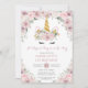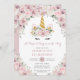 Invitation Blush Pink Floral Cute Unicorn 1er Anniversaire
