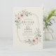 Soft and romantic, this blush pink bridal shower invitation features delicate watercolor florals framing a modern gold geometric hexagon. The gentle color palette of pink roses, eucalyptus, and sage greenery creates an ethereal garden aesthetic. Perfect for elegant spring or garden weddings seeking a contemporary yet feminine design with metallic accents.