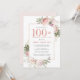 Invitation Blush Pink Gold Floral 100e fête d'anniversaire