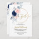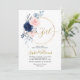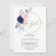 Invitation Blush Pink & Navy Rose Floral Wreath Baby shower