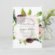 Élégante et moderne, la faire-part de mariage fleurie est composée d'un ensemble de roses et de pivoines d'aquarelle en ivoire, rose vif et marsala bordeaux, avec des plantes vertes luxuriantes et du feuillage. Les détails de votre mariage sont superposés sur un carré blanc pur dans un élégant lettrage noir foncé accentué avec écriture manuscrite.