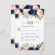 Cartes de réponse de mariage floral de printemps aquarelle bleu marine et blush rose - comprennent une typographie de script élégante et belle avec une feuille botanique moderne et une branche d'arbre pour la célébration spéciale du jour du mariage.
