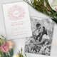 Blush rose pâle, dessiné à la main, faire-part de mariage d'art botanique en feuilles avec votre propre photo sur le dos. Un design de feuille simple encerclant votre propre design d'initiales monographiques. Dans de jolies nuances de rose et de gris sur le blanc, personnalisez avec vos propres détails mariages et photo au verso. Autres couleurs et objets correspondants disponibles. © Dessin et dessin de la feuille d'origine par Sarah Trett pour www.mylittleedenweddings.com sur zazzle.