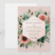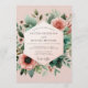 An elegant and artistic design with a romantic, painterly aesthetic. The lush botanical arrangement features soft blush roses and vibrant coral anemones, accented by deep teal and sage green foliage. This beautiful composition creates a fresh and sophisticated atmosphere for a memorable union.
