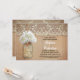 Jolie invitation à la douche nuptiale rustique avec bocal de mason avec fleur d'hydrangée blanche. Invitation parfait pour la douche nuptiale avec dentelle vintage et des accents de bois en détresse.
