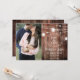 Des bocaux mason et des guirlandes lumineuses, avec une couronne de souffle de bébé, sur un fond en bois de grange de ton rose. L'annonce de mariage rustique et champêtre idéale pour votre Grand Jour. Personnalisez-la et faites-en votre propre ! La carte d'invitation et la carte de réponse assorties sont disponibles dans notre magasin Cartes et Cadeaux de Mariage.