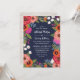 Faire-part de mariage florale avec des fleurs dessinées à la main dans de magnifiques combinaisons de couleurs - vert olive avec orange et rose chaud et corail et bleu marine - formant un cadre autour de votre texte d'invitation en polices blanches. Le dos est imprimé à la texture de bouleau.