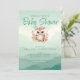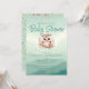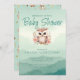 Une chouette douce aux éléments floraux est centrée dans cette invitation à thème animal de forêt douce verte. Un paysage aux teintes vertes d'aquarelle en tant qu'arrière - plan en fait une grande invitation à thème de la forêt et de la nature. le vert est une grande couleur neutre genre pour un baby shower.