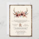 Éblouissez vos invités avec cette élégante invitation de mariage tout en un avec bouquet de fleurs rustiques et bois de cerf avec QR Code pour RSVP en ligne. Ajoutez simplement les détails de votre événement sur ce modèle facile à utiliser pour en faire une invitation unique.