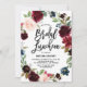 Célébrez la mariée d'être avec cette belle invitation à déjeuner nuptiale avec des illustrations aquarelles de couronnes bordeaux, rousses et bleues florales avec des accents de feuillage. Cette invitation à déjeuner de mariée à fleurs est parfaite pour les événements d'automne et de boho. L'arrière de l'invitation présente un arrière - plan bordeaux avec une guirlande fleurie et deux lignes de texte personnalisables pour un libellé supplémentaire. Des éléments correspondants sont disponibles.