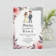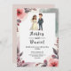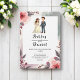 Cette élégante faire-part de mariage florale aquarelle est parfaite pour une mariage moderne. Le design romantique présente un cadre floral aquarelle élégant avec une illustration de mariée et de mariée et de calligraphie noire sur un arrière - plan blanc.