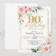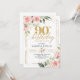 Invitation Boho aquarelle rose et floral doré feuillage 90 an