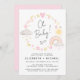 Whimsical boho petite fille couples douche invitation avec des aquarelles roses et jaunes d'un arc-en-ciel, soleil, coeurs, étoiles, lunes et nuages, "Oh Baby!" dans un script élégant et les noms de la mère et le père et les détails de la douche dans la typographie simple.
