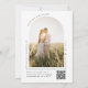 Faire-part de mariage avec un cadre et un design simple en arc. A l'envers avec Photo et QR Code à RSVP. Customisez avec vos informations. Cliquez sur "cliquer pour customiser plus loin" pour modifier le style, la taille ou la couleur de la police.