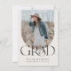 Boho Arch Simple Three Photo Budget Graduation Invitation présente une photo sur le devant et deux photos sur le dos avec les détails de l'invitation à la graduation.