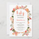 Boho fall terre cuite script floral genre neutre invitation baby shower avec joli peint à la main teintes chaudes de terre cuite, pêche et vert foncé avec un masque rond. Parfait pour la fête du baby shower à thème boho automne. Avec une typographie de script moderne.