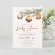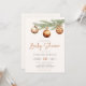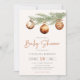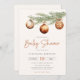 Invitation minimaliste de baby shower neutre genre avec branche de pin aquarelle décorée avec des ornements de Noël.