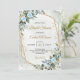 Invitation Boho bleu poussiéreux et eucalyptus et cadre or