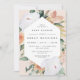 L'élégante invitation à baby showers floraux sans sexe présente un cadre hexagonal allongé de fleurs d'aquarelle et de feuillage dans des tons de pêche, de blanc, d'ivoire et de vert sauge inspirés du désert du boho. Personnalisez avec vos détails de baby shower en lettres modernes.