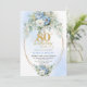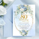Invitation Boho Blue Floral Peony Gold Frame 80th Birthday
