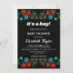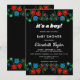 Invitation Boho Blue Red Roses Black Floral Boy Baby shower