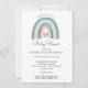 Simple et mignon boho aquarelle arc-en-ciel invitation baby shower garçon. Motif arc-en-ciel au dos de l'invitation. Style adorable et fantaisiste. Style adorable et fantaisiste. Consultez la collection complète des produits correspondants pour cette conception à l'adresse suivante : https://www.zazzle.com/collections/boho_watercolor_rainbow_boy_blue_baby_shower-119057643899551113