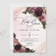 Invitation Boho Blush et maroon bordeaux cadre or floral