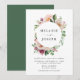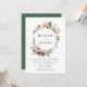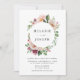 Invités Invitations à votre mariage dans le style avec nos élégantes invitations de mariage florale à l'aquarelle bleu et rose. L'invitation affiche vos noms entourés d'un cadre circulaire de fleurs d'aquarelle rousse, rose et violette agrémenté d'un feuillage vert avec vos détails mariages ci-dessous. Personnalisez les invitations en ajoutant votre nom, votre date de mariage, votre heure, votre emplacement et les informations de réception. L'invitation revient à un arrière - plan vert solide.