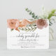 "BOHO Blush Rose Floral Aquarelle Baby Girl Shower Invitation." Aquarelle peinte à l'eau, florale de pêche et d'abricot avec fleurs roses, de pivoines et de ranunculus, feuillage rose à l'eucalyptus et à la feuille d'olivier, et vert sauge dans un style moderne et peint. Créée et conçue par Audrey Jeanne Roberts, artiste reconnue et reconnue internationalement. Droit d'auteur .
