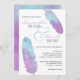 Boho / Bohemian Turquoise Purple and Blue Watercolor Feathers Faire-part de mariage.