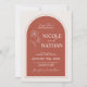 Jolie terre cuite boho rustique (rouille, tonalité terre) avec invitations de mariage beige. Design de style bohème avec arche. Couleur, texte et arrière - plan peuvent être changés. Le dos de la carte contient les initiales de la mariée et du marié. Do-it-yourself facile, sur un budget de cordes de chaussures. Voir la collection "NICOLE" pour les articles correspondants.