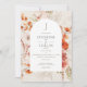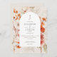 Ce design est composé d'une rouille orange brûlée, d'un brun de pêche et d'un cadre fleuri crème avec une végétation verte sauge autour d'une arche blanche sur un arrière - plan beige. Un monogramme complète le look simple mais élégant de cette invitation. Cette carte fait partie de la suite de cartes Mariage Boho Burnt Orange Fall Floral Arch Monogram de Simply Farmhouse Press.