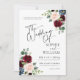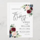 Boho Burgundy et Blush Floral Faire-part de mariage. Cette invitation est caractérisée par des roses boho bordeaux et rougis et des fleurs avec deux polices de haute classe modernes qui façonnent les tendances des événements festifs actuels et futurs.