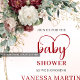 Invitation Boho Burgundy Greenery Gold Baby Shower Invite