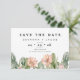 Boho Cactus Succulents Mariage Enregistrer la Date Card Mariage audacieux enregistrer la date carte avec quelques cactus et succulents et des fleurs roses poussiéreuses. Le verso de la carte présente la photo de couple.