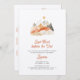 Jolie aquarelle boho camping / glamping "dernier sentier avant le voile" Bachelorette week-end invitation avec itinéraire à l'arrière avec belle orange, terre cuite, cultivé et gris schéma de couleurs.