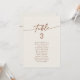 Ces cartes de sièges boho chic crème suspendues sont parfaites pour un mariage minimaliste. Le design bohème moderne en terre cuite neutre orangée et crème présente une calligraphie rustique simple au style unique mais classique. Ce tableau peut être utilisé sur la table ou comme carte de sièges suspendus. La conception s'imprime à l'avant et à l'arrière. Personnalisez chaque numéro de table dont vous avez besoin, en ajoutant chacun à votre panier individuellement.